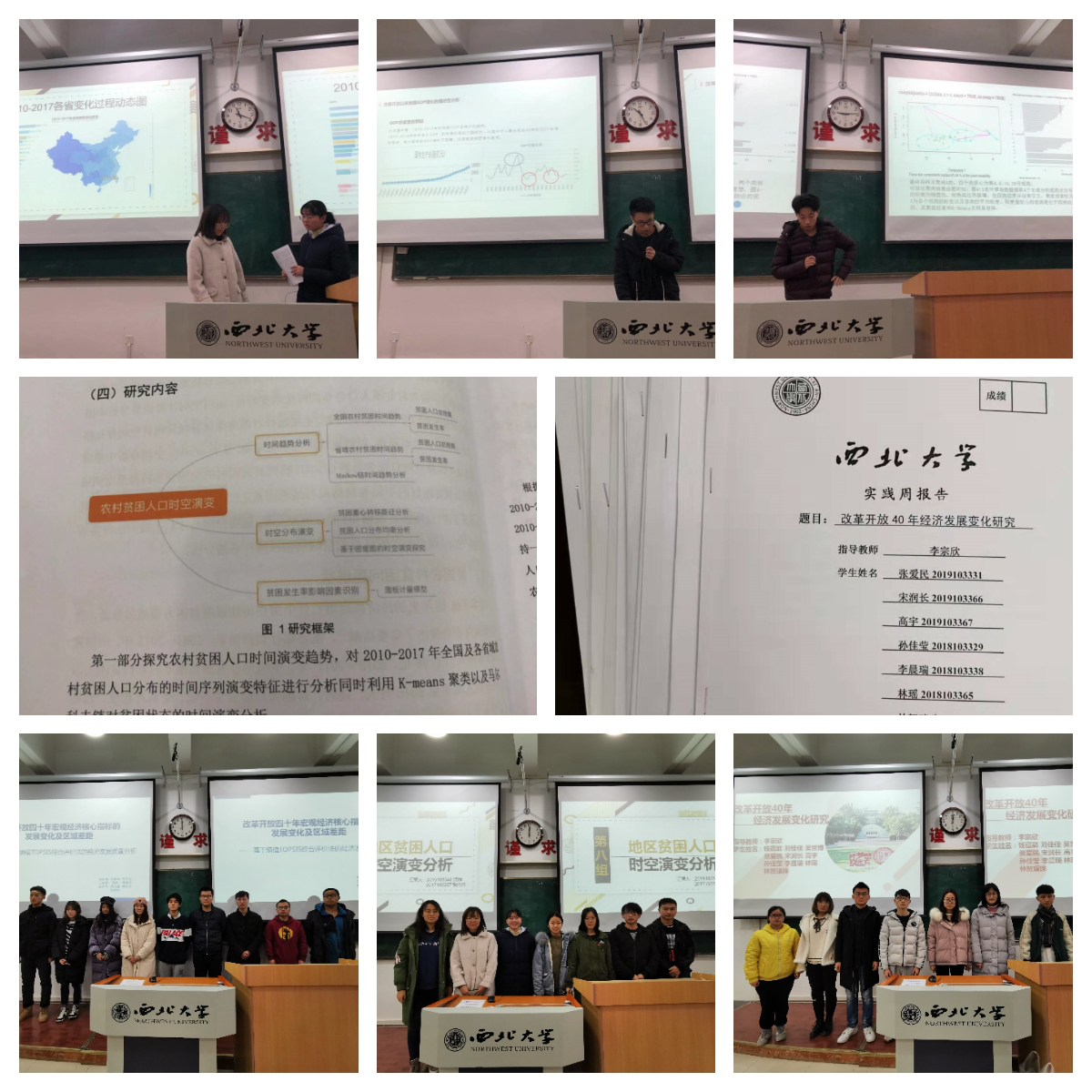 17-10日,18个小组从“黄河流域与长江经济带的经济、社会、环境现状与对比分析”、“地区贫困人口的时空演变分析”和“改革开放40年宏观经济核心指标的发展变化及城乡差距、区域差距比较”三个方向中任选一题开展工作。各小组通过与指导教师讨论、组员内部讨论、数据收集与分析等环节,充分发挥自身专业优势与团队合作精神,顺利完成研究报告和汇报PPT