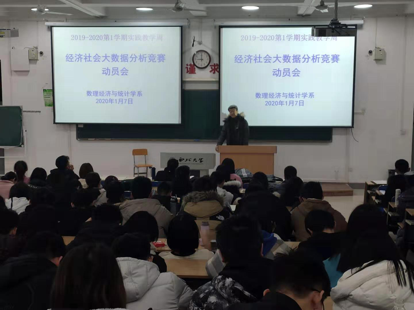 202017日至110日,数理经济与统计学系成功举行了以“经济社会问题大数据分析”为主题的教学实践周活动。数理经济学(实验班)与经济统计学两个专业三个年级共180名学生参与了本次教学实践周活动。本次实践周由系主任茹少峰教授和王莉副教授带队,青年教师张苗、南士敬、张涛和李宗欣参与了实践周指导工作。