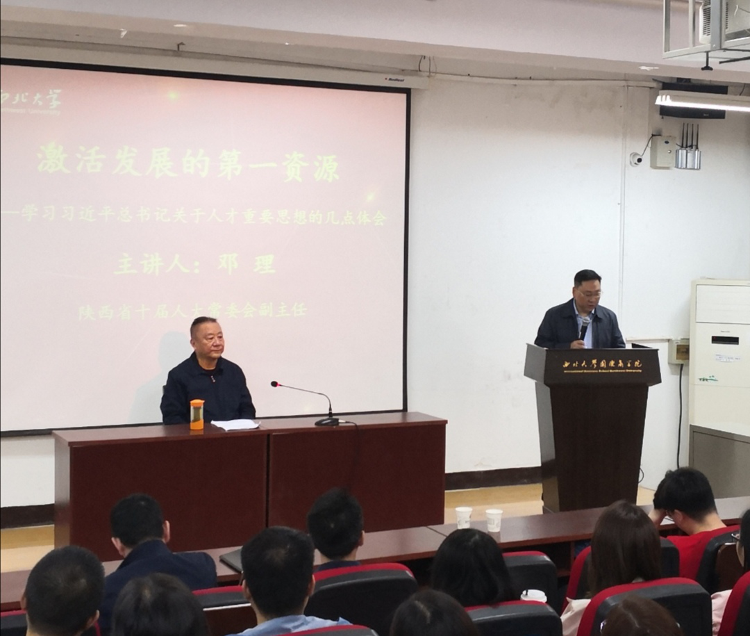 9月20日,MBA/EMBA教育中心特邀原陕西省人大常委会副主任、省决策咨询委员会副主任邓理为MBA/EMBA学生做了题为《激活发展的第一资源——学习习近平总书记关于人才重要思想的几点体会》的专题报告。西北大学党委副书记赵作纽出席,报告会由学院党委书记杜勇主持。