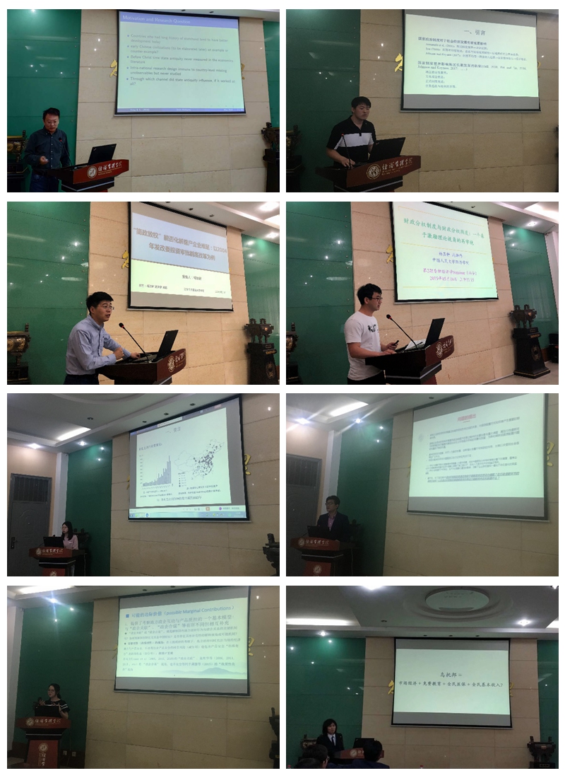 下午的会议由776net必赢官网吴丰华副教授主持,依次交流讨论了中央财经大学张川川、陶美娟的《性别比失衡、彩礼与子女支持》,西北大学葛晶、李勇、王满仓、黄谦的《混合所有制改革缓解了高学历劳动力错配吗?》,南京审计大学李想、徐婷婷、李昕玮、陆敏的《政府监管、社会监督与企业质控:政绩理性的逻辑》,西北大学欧阳葵、李楠、张明进、伍勇、王国成的《贫困、不平等与乌托邦:全民基本收入方案的理论基础及应用》等4篇工作论文。776net必赢官网石阳副教授对以上文章做了点评。会议最后由776net必赢官网副院长马莉莉教授作总结发言。