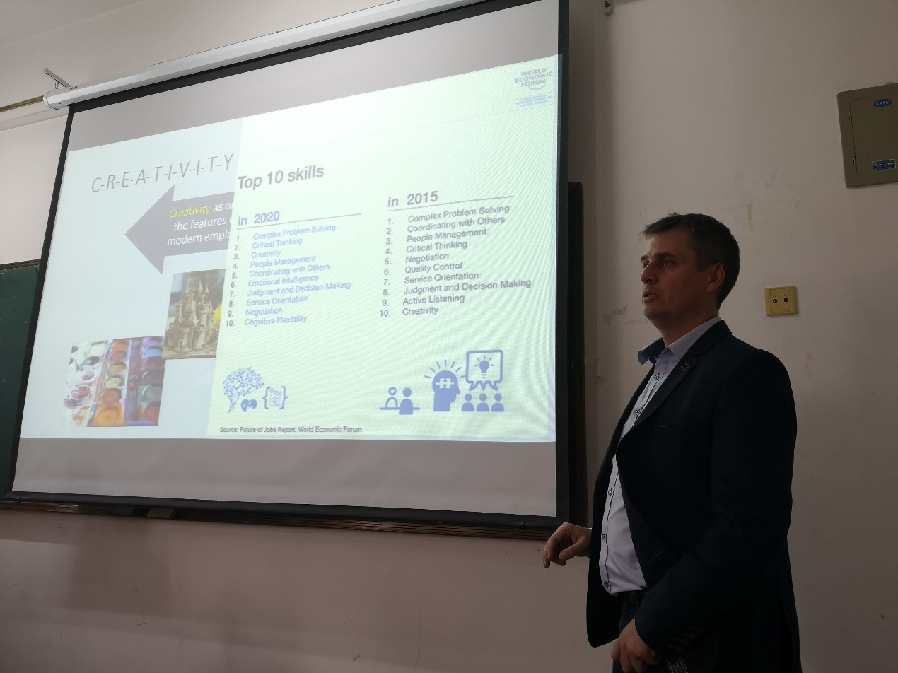 代表团此行还访问了776net必赢官网,并为师生作学术报告。在3月21日举行的《未来职业所需的能力及人力资源管理面临的变革与挑战》报告中,Dariusz Danilewicz副教授从数据的飞速发展入手,探讨了新的经济环境对于职业产生的新要求,他通过对比世界经济论坛发布的2015年和2020年最重要的技能,分析了为何复杂问题的解决能力、批判性思维能力、创新能力是位居前三的重要技能;结合工业革命发生的历史,探讨了职场能力正在发生的巨变,指出如今的工作中将有47%会在未来十年之间不复存在,分析了人力资源管理领域可能产生的变革和必须应对的挑战。最后他用彼得德鲁克的一句名言结束讲座,即“预测未来的最佳方法就是开创未来”。