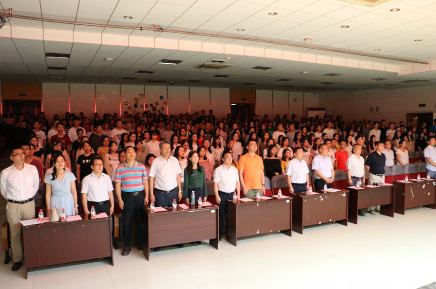 典礼在高昂的国歌声中拉开序幕。2014级金融工程班的董妍同学代表2018届本科毕业生发言。她回忆了本科期间难忘的三件事,冬天清晨图书馆门前等待开门排队的场景、自己在学生会的经历和身边同学的考研备战等情景,表达了对学院老师、辅导员、父母和同学的感谢之情和对大学生活的深深眷恋。