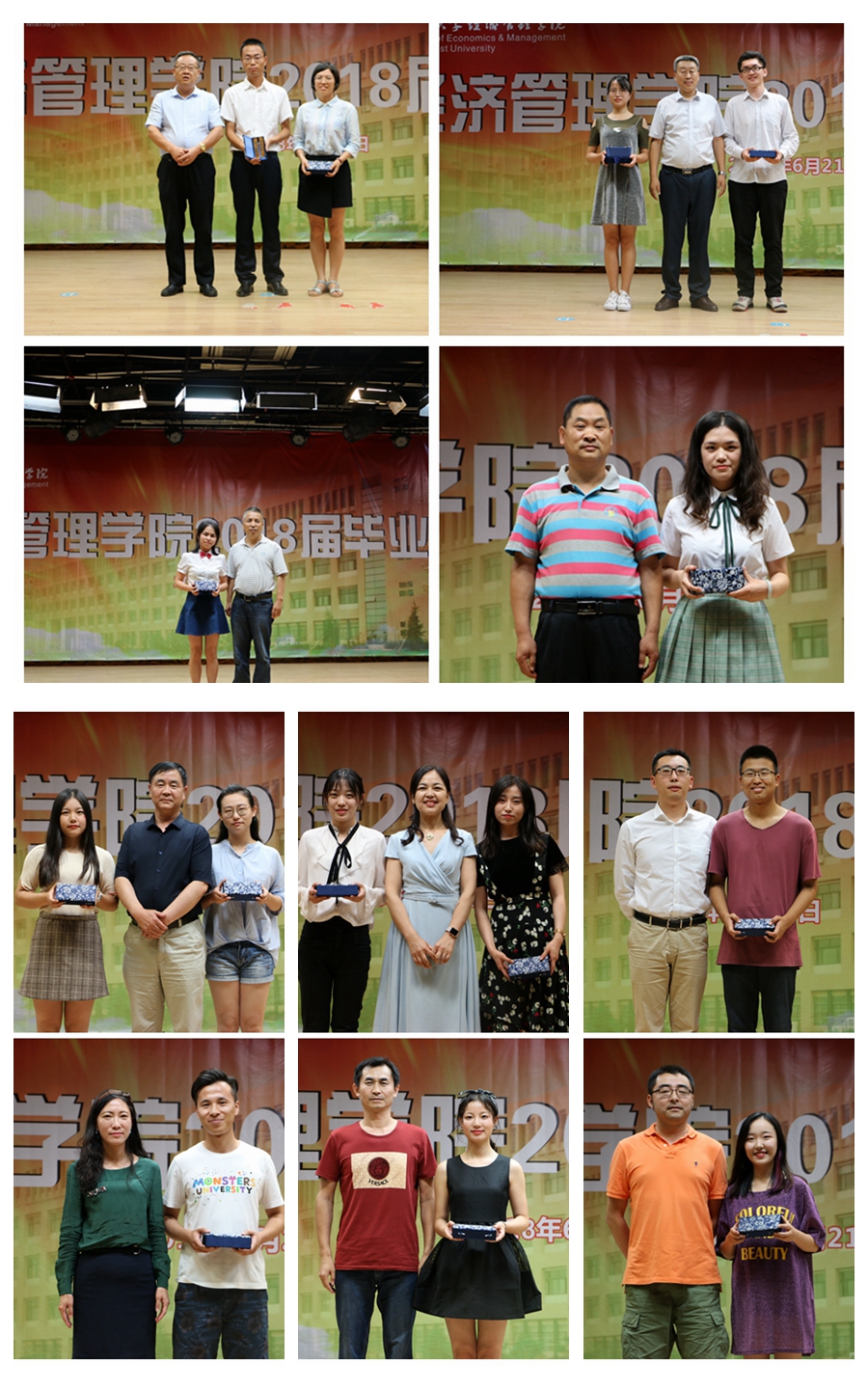 随后进行了“毕业生纪念礼物赠送仪式”,任保平院长和各系主任分别向本院博士、硕士,本科各系毕业生代表赠送了精心准备的毕业礼物:一对刻有由任保平院长亲书的“前程似锦,情系经管”字样的书签,以此祝贺毕业生踏上人生新旅途。