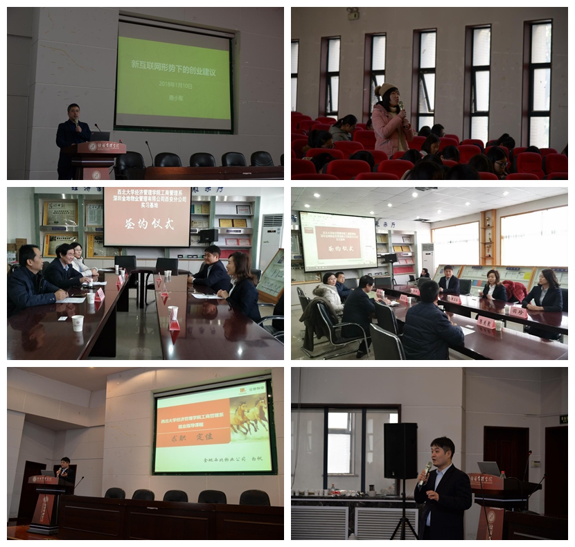 签约结束后,金地物业西安分公司人力资源部白帆经理,羽珍随同我系陈关聚教授来到金海恒业报告厅,向15、16级财务管理专业学生和17级工商管理类学生做了实习信息发布会。白帆经理向同学们讲解了金地物业在国内和西安的发展现状和招募实习生的具体要求,之后,在大学生职业规划方面,向大家提出了很多中肯的建议,同学们受益匪浅。