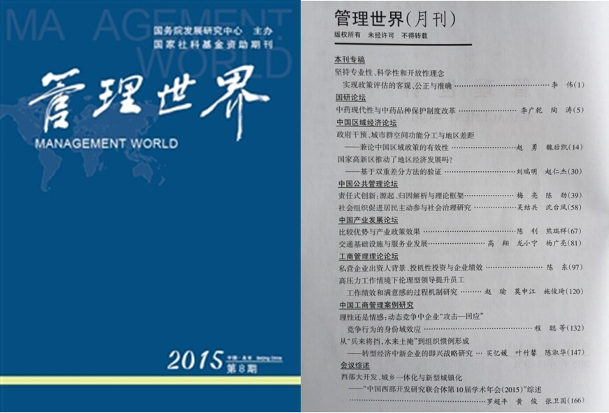 近日,国内经济管理类权威期刊《管理世界》在2015年第8期同期刊登了经管院赵勇副教授和刘瑞明副教授撰写的二篇长文章,分别是《政府干预、城市群空间功能分工与地区差距》和《国家高新区推动了地区经济发展吗?》。