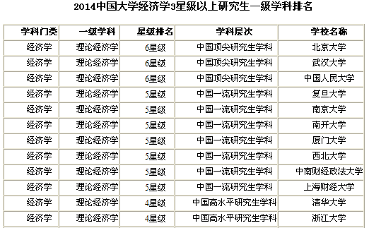 日前,艾瑞深中国校友会网最新发布《2014中国大学研究生教育评价报告》,报告公布了《2014中国大学经济学3星级以上研究生一级学科排名》,我院的理论经济学与复旦大学、南京大学、南开大学、厦门大学等高校并列5星级,位居第8名。