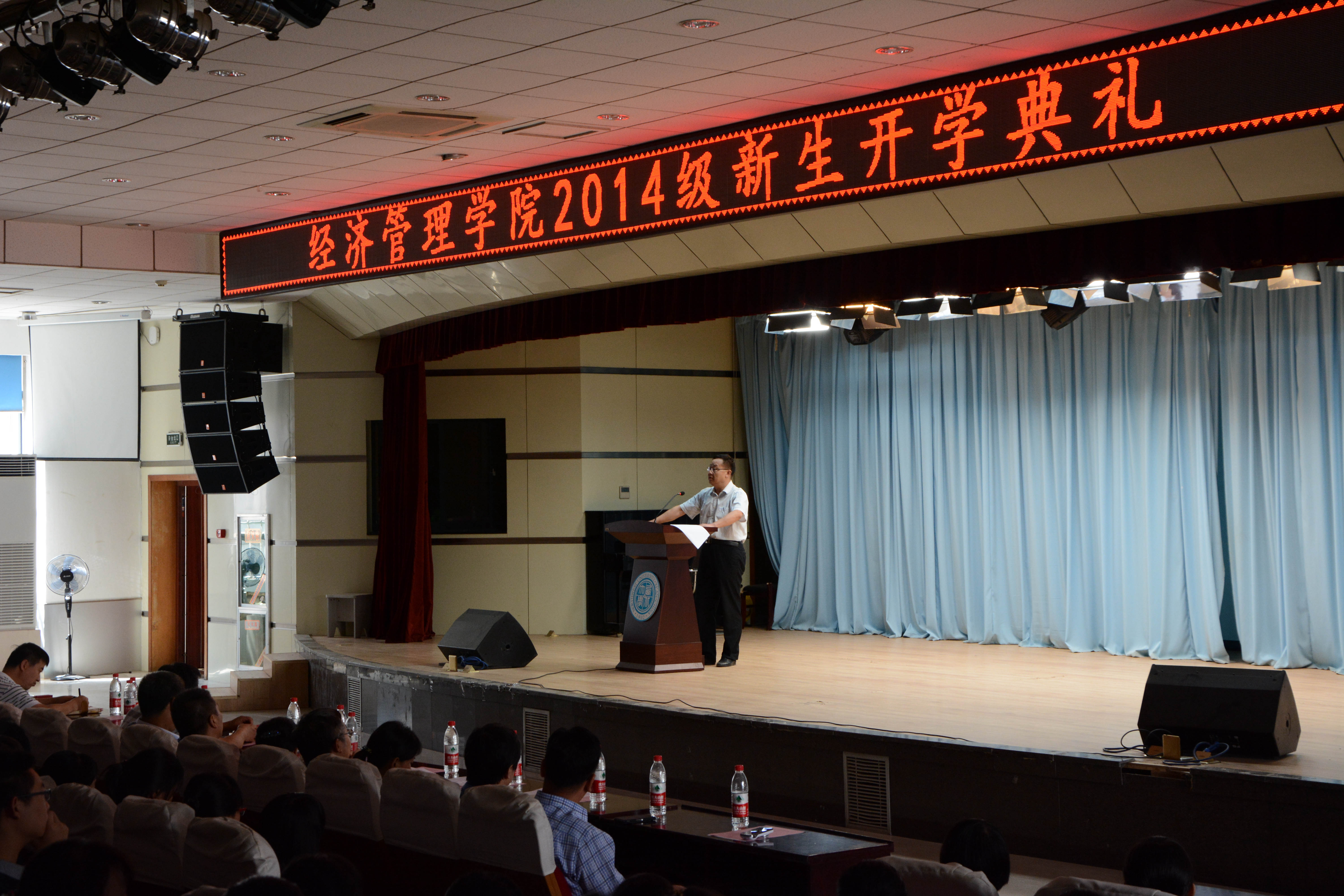 9月3日下午2点,我院在南校区多功能报告厅隆重举行2014级新生开学典礼,学院党政领导、各系主任、院长助理、教师代表及2014级本科生、研究生共500余人参加了典礼,典礼由院党委副书记李一凡主持。