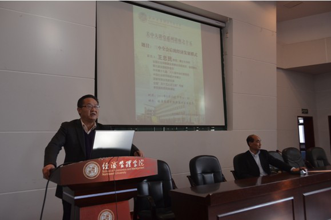 报告开始之初,王忠民教授回忆了1978年在西北大学经管学院就读时的情景,并对35年来西大、经管学院所发生的变化表示高兴。在报告中,他介绍了中国在工业化过程中取得的成就以及面临的基本问题,并从农业文明、环境污染、金融发展和十八届三中全会前后中国所发生的变化来展开论述。