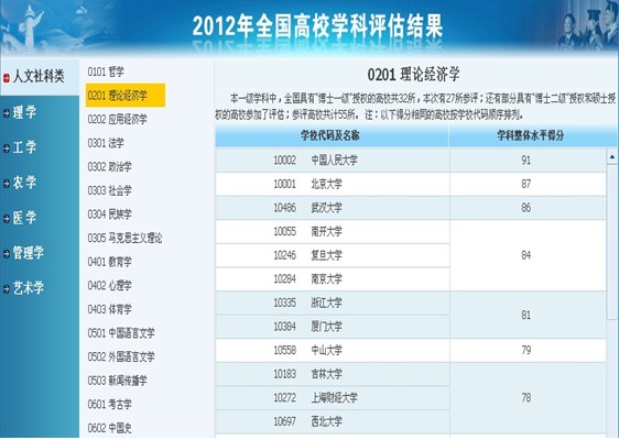 在理论经济学学科中,全国具有“博士一级”授权的高校共32所,本次有27所参评;还有部分具有“博士二级”授权和硕士授权的高校参加了评估,参评高校共计55所。在比2009年参评高校增加19所的情况下,我院理论经济学排名从2009年的14名跃升到第十名,取得历史性突破。
