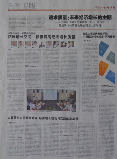 10月10日,中国社会科学报整版报道了我院9月14日召开的中国经济增长质量指数(QEGI)发布会暨经济增长质量论坛。