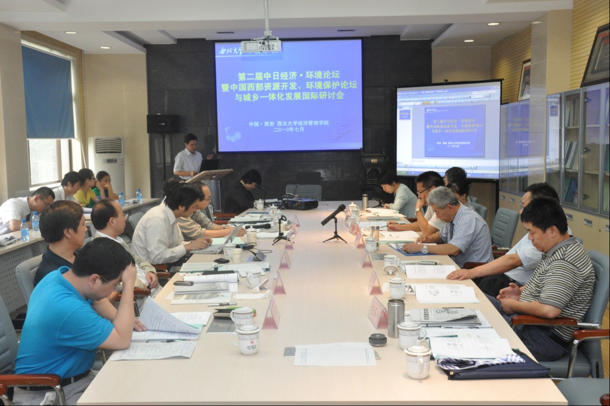 第二届中日经济·环境论坛暨中国西部资源开发、环境保护论坛与城乡一体化发展国际研讨会于2010年7月18-19日,在776net必赢官网三层学术报告厅召开。京都大学植田和弘教授、稻本隆寿教授、森晶寿准教授、金红实博士,日本龙谷大学北川秀树教授,光明日报孙明泉博士,武汉大学刘传江教授,西安交通大学李国平教授,陕西循环经济研究会冉新权教授,临潼区任军号书记,西北大学白永秀教授、任保平教授、严汉平教授、何爱平教授、徐波副教授、李长宏副院长以及我院教师代表、学生代表30余人参加了本次会议。