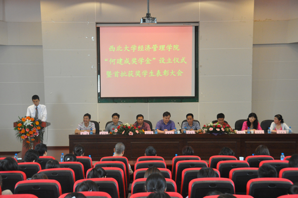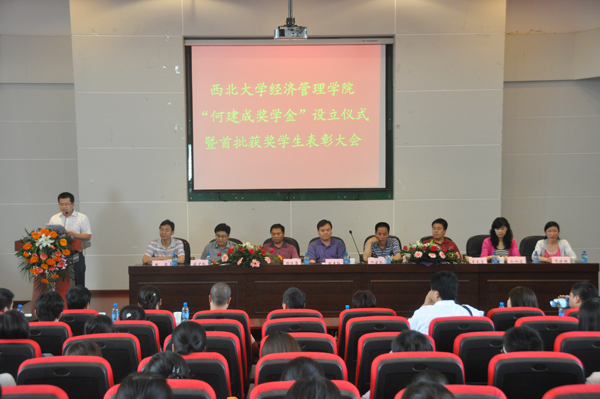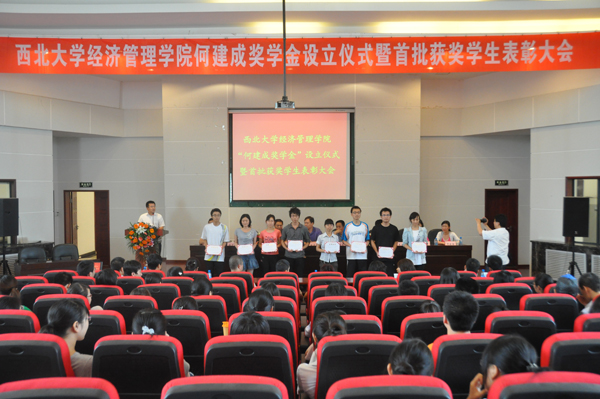 2010年6月13日,我院“何建成奖学金”设立仪式暨首批获奖学生表彰大会在金海报告厅隆重举行。西安市西三爻村改造发展有限公司董事长何建成先生、学生工作部田兵权部长、张少为副部长、学院李长宏副院长、樊涛副书记出席了会议,“何建成奖学金”首批获奖学生和各年级学生代表270多人参加了大会。