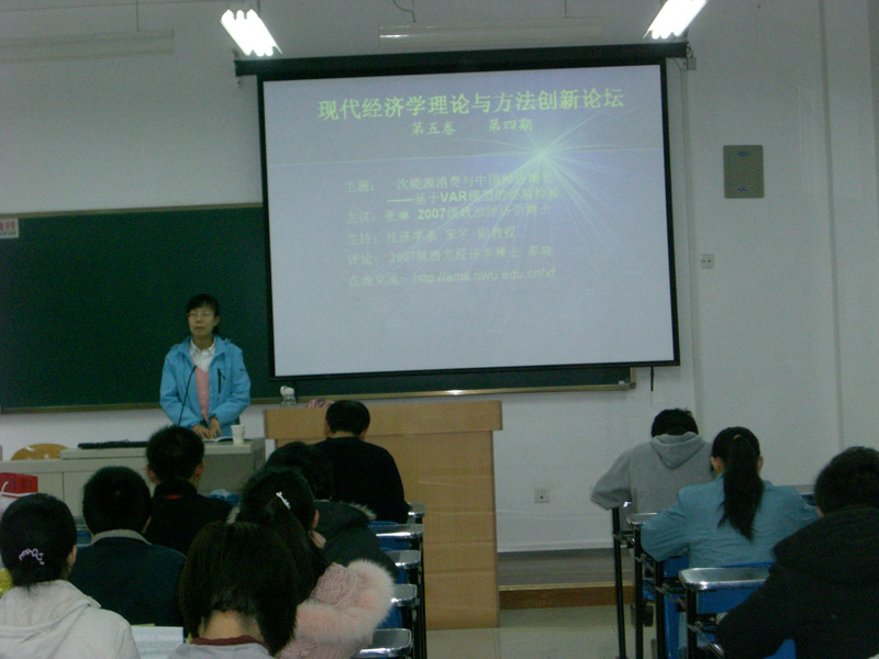 由学院经济学系和经济增长与计量研究所共同主办的“现代经济学理论与方法创新论坛”第五卷第四期10月22日下午2点在学校南校区1105教室举行。学院的部分博硕士生、2007基地班和学校其它专业的学生60多人参加了此次论坛。论坛由学院经济学系宋宇副教授主持,2007级西方经济学硕士邵晓评论,2007级政治经济学博士张琳主讲。