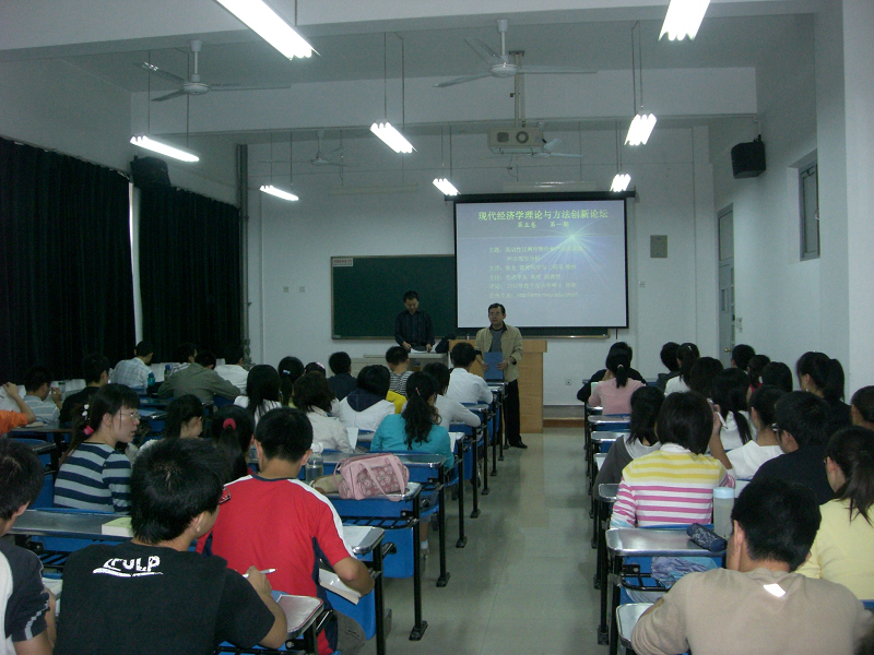 由学院经济学系和经济增长与计量研究所共同主办的“现代经济学理论与方法创新论坛” 第五卷第一期9月10日下午2点在学校南校区1105教室举行。学院的部分博硕士生、基地班和学校其它专业的学生约100人参加了此次论坛。这是新学期的第一次论坛,至此论坛已经走到了第五个年头。