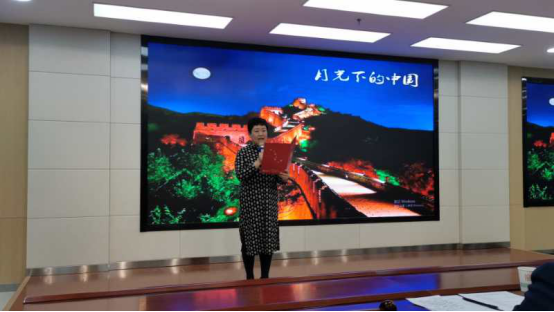 “我一直想为月光下的中国写一首诗,我喜欢它宁静的样子,喜欢他温柔中的强大力量......”卢春香副教授将深深地爱国之情在诵读中娓娓道来。热爱祖国的宁静与祥和,快意祖国的蒸蒸日上,憧憬祖国美好的明天。