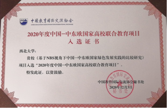 2020年12月2-3日,中国-中东欧国家高校联合教育项目立项活动在重庆举办,此次活动由中国教育国际交流协会主办,重庆邮电大学承办,来自中国地质大学(北京)、西安交通大学、北京师范大学、西北大学v、中央财经大学等30余所高校共同参加。学院史贝贝副教授主持的《基于NBS视角下中国-中东欧国家绿色发展实践的比较研究》获批2020年度中国-中东欧国家高校联合教育项目立项。本年度共计收到60余项项目申请,涉及会员单位44家,外方联合院校涉及中东欧15国的55所高校和教育机构,经过评审最终获批33项。此次立项是学院国际化合作取得的又一重要成果,也是西北大学在中国-中东欧国家高校联合教育项目申请中的首次突破。