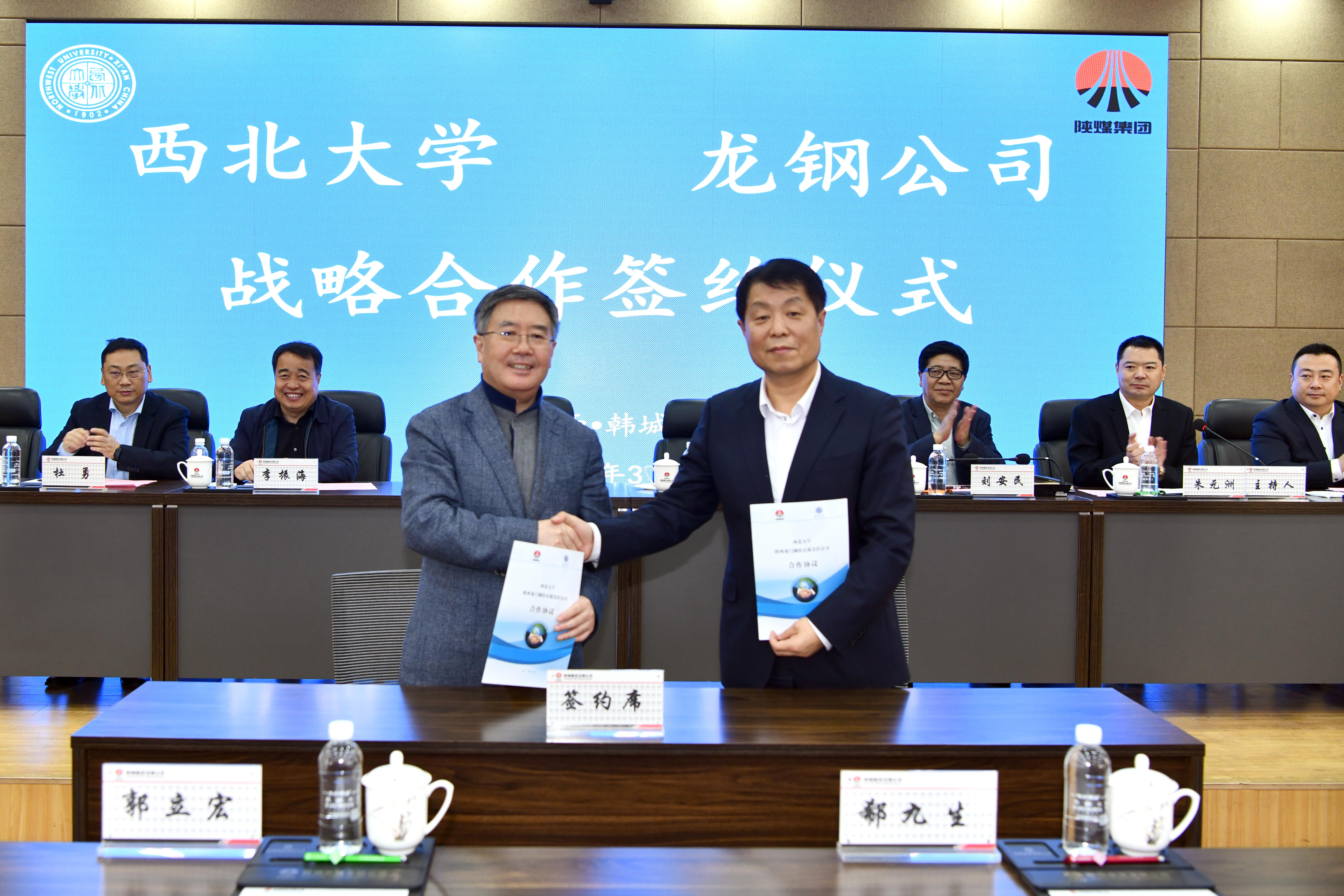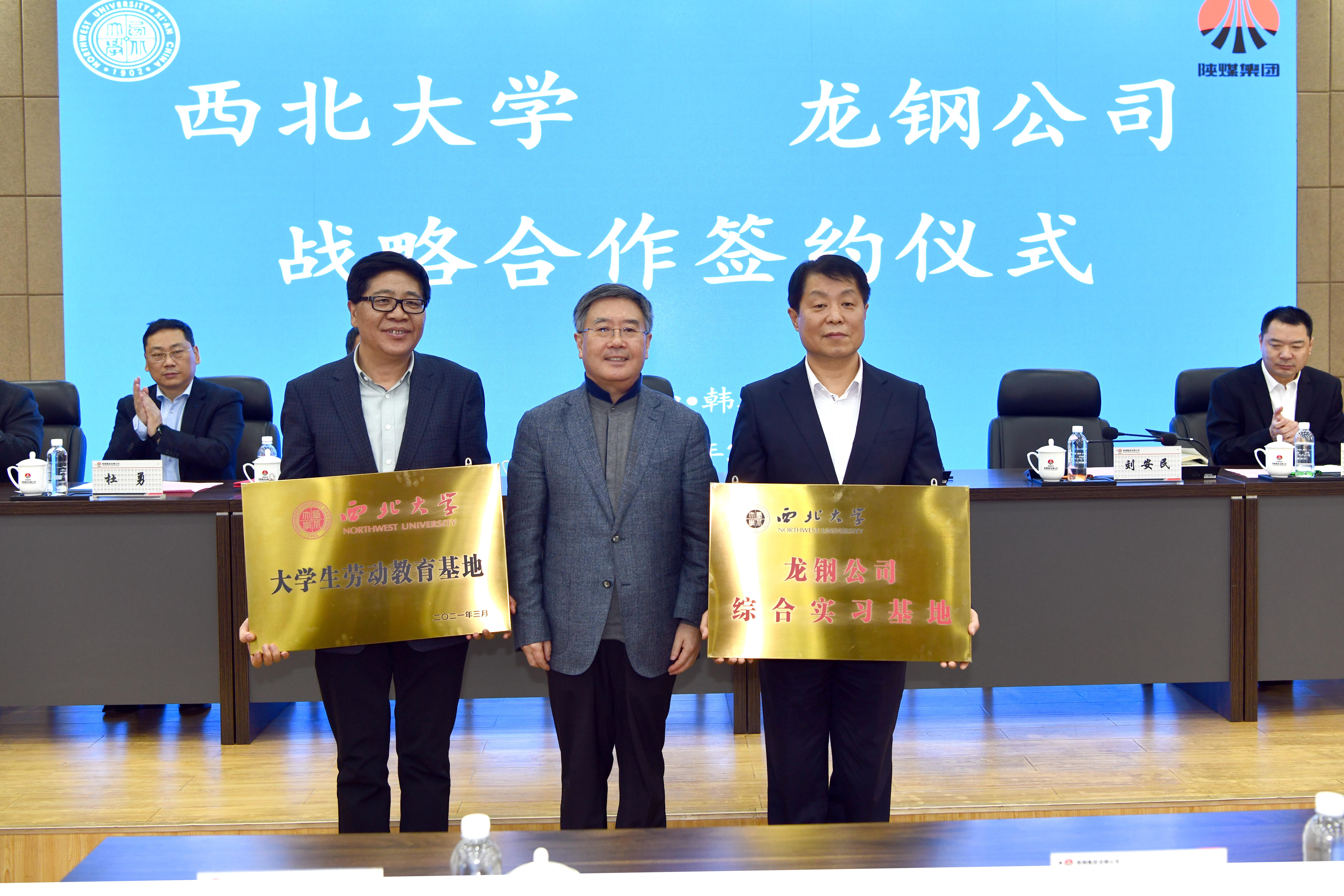 郭立宏和郗九生代表双方签署《龙钢公司西北大学校企战略合作框架协议》。根据协议内容,双方将在产学研融合发展、人才培养、科技创新等方面开展深入合作。郭立宏和郗九生、刘安民共同为“西北大学综合实习基地”和“西北大学大学生劳动教育基地”揭牌。