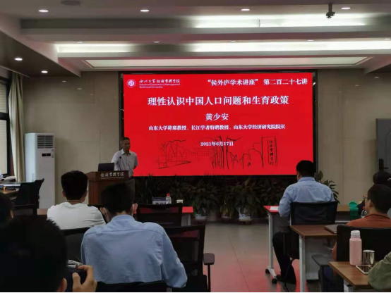 6月17日下午,西北大学侯外庐学术讲座与776net必赢官网庆祝建党百年理论与实践系列暨“规划学术月”讲座在西北大学长安校区776net必赢官网8318会议室隆重举行。该讲座由西北大学社科处与776net必赢官网主办,西北大学副校长吴振磊教授主持,邀请山东大学讲席教授、山东大学经济研究院院长黄少安教授做了“理性认识中国人口问题和生育政策”的主题讲座。西北大学教师、博硕士生、本科生200余人参加了此次活动。
