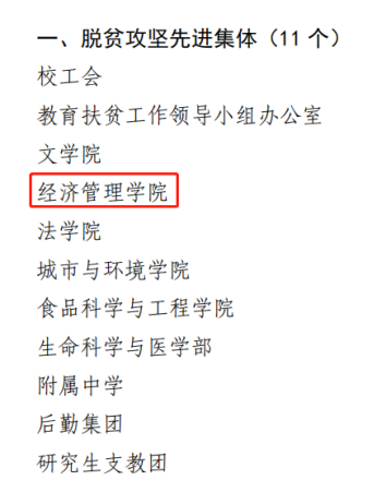 7月16日,学校颁布了《中共西北大学委员会 西北大学 关于表彰西北大学脱贫攻坚先进集体和先进个人的决定》,我院荣获“西北大学脱贫攻坚先进集体”称号、我院白永秀教授荣获“西北大学脱贫攻坚先进个人”称号。