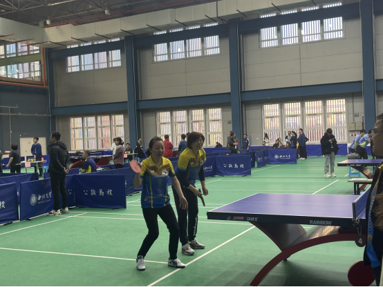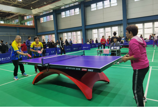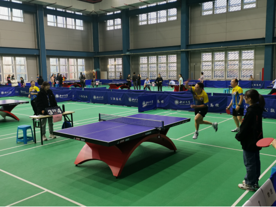 12月4日,各学院教职工在小组预赛上进行了激烈的角逐,乒乓球在台上来回飞舞,场上我院各位运动员不断变换侧跑步、并步、跨步等步式,男单女单队员采用接发球抢攻、下旋球、吊边角、提拉、大力扣杀、推挡等多种战术,男双、女双、混合双打或精准进攻,或巧妙回旋,精彩场面层出不穷。我院队员在观赛区的阵阵喝彩声中先后击败同组对手,最终以小组预赛第一的成绩成功出线!