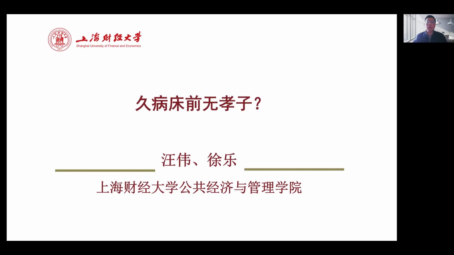 4月8日下午,776net必赢官网学术沙龙在腾讯会议平台成功举办。讲座由西北大学副校长、776net必赢官网院长吴振磊教授致辞,学院副院长师博教授主持,特邀上海财经大学公共经济与管理学院汪伟教授做了题为“久病床前无孝子?”的学术讲座。学院老师和硕、博士研究生等共计200余人参与了本次线上讲座。
