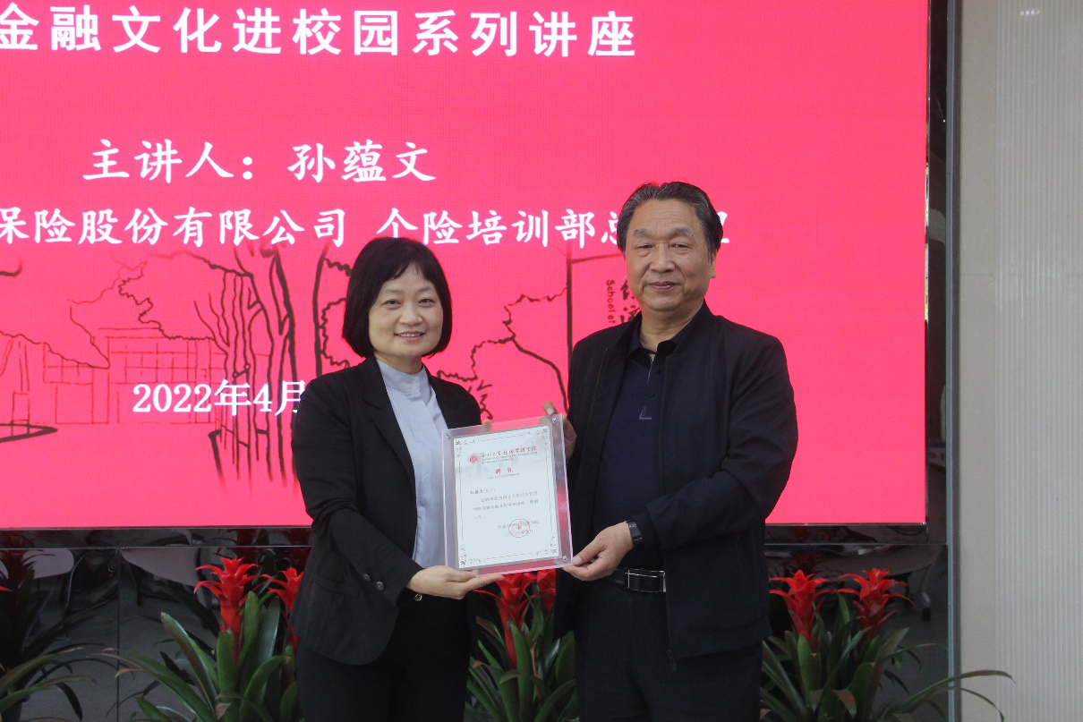 讲座中孙蕴文从我国保险行业的历史、中国人寿保险公司的发展历程、特色清廉文化三个方面,讲述了中国人寿保险股份有限公司构建特色清廉金融文化助推企业发展的历程。她讲到,清正廉洁是金融行业的立身之本,每一个金融工作者、监管人员、从业者身负的重要责任。最后,她勉励各位青年学生,作为未来的金融从业者,一定要加强自律、清廉为人,真正做到心有所畏、言有所戒、行有所止,始终绷紧廉洁弦,带头践行社会主义核心价值观,成为助力国家经济和社会发展的栋梁之才。本次讲座结构清晰、内容翔实、环环入扣,是一堂精彩的思政课,精道的专业课,使参会同学们受益匪浅。