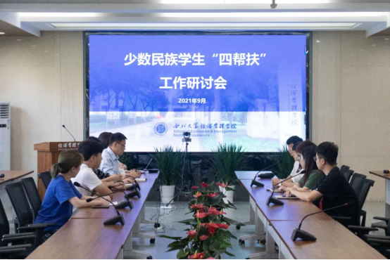 会后,党委副书记、辅导员与主要学生干部共同开展“少数民族学生‘四帮扶’工作研讨会”,集中讨论了如何做好少数民族学生工作,进一步深化对少数民族学生的政治帮扶、思想帮扶、学业帮扶、生活帮扶。