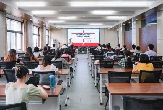 徐自成在讲话中代表学校对参加此次活动的领导、嘉宾表示热烈欢迎,对陕西银保监局和兴业银行西安分行长期以来对西北大学的关注和支持表示感谢。他讲到,周经理以银行业清廉文化建设与合规管理的关系为题,通过鲜活的案例、丰富的理论以及系统专业的分析,为大家上了一堂精深的专业课,深刻的思政课。学院将开展清廉金融文化系列活动,引导大学生们树立正确价值理念、行为规范和行业风尚,为陕西金融业的高质量发展提供坚实持久的廉洁文化根基。