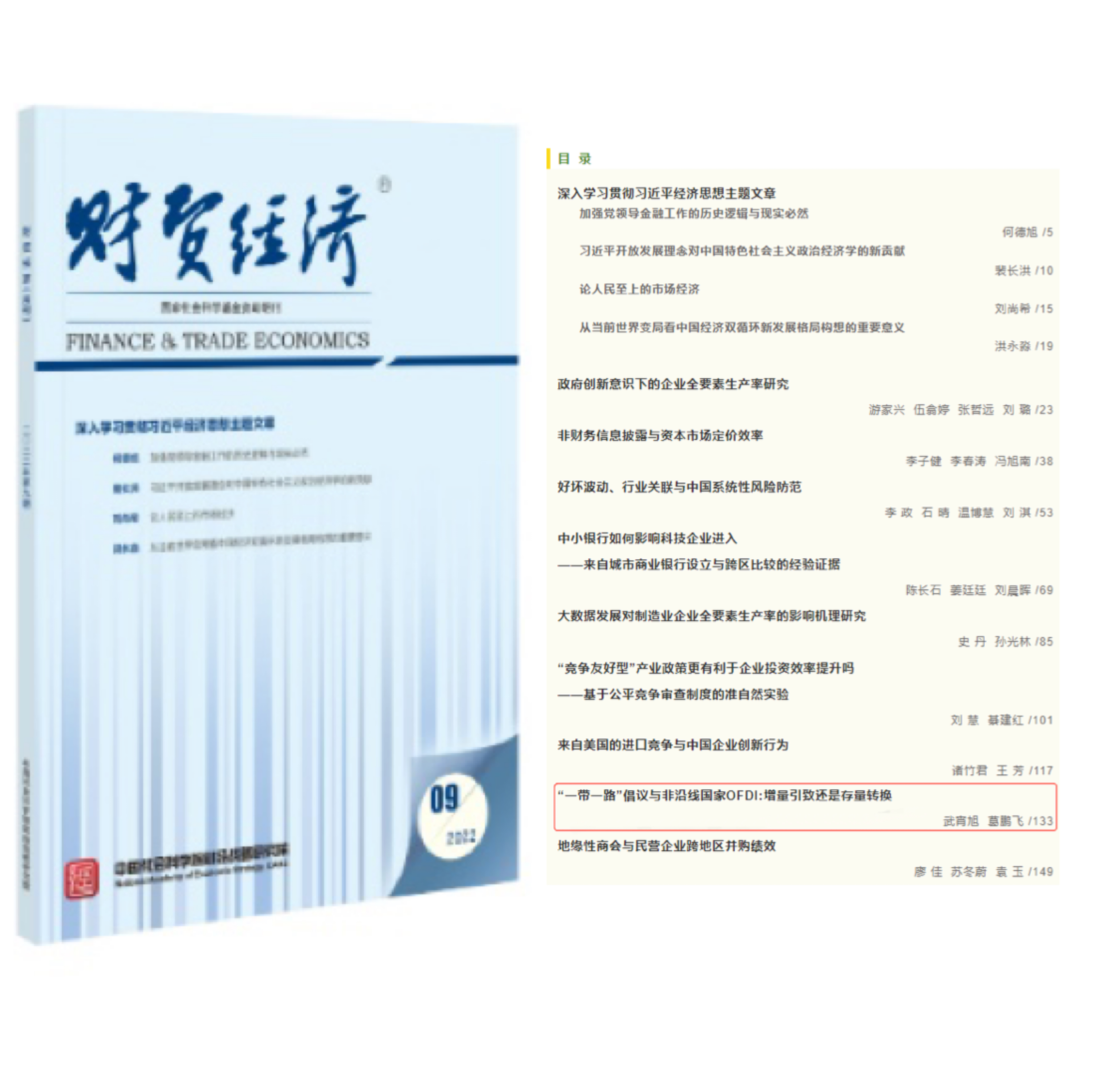 近日,776net必赢官网师资博士后武宵旭与副教授葛鹏飞合作完成的论文《“一带一路”倡议与非沿线国家OFDI:增量引致还是存量转换》在中国人文社会科学权威期刊《财贸经济》2022年第9期发表。该论文前期工作由金融系本科生王腾蛟、黄智超完成。