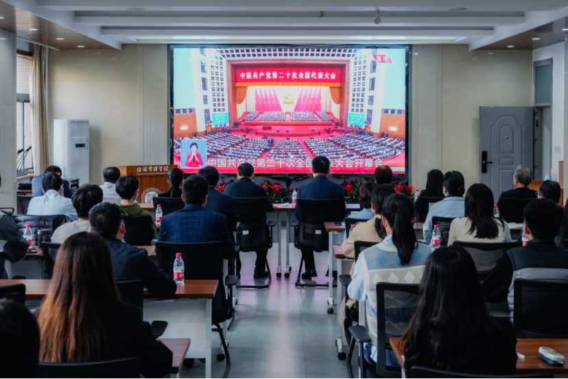 10月16日上午,中国共产党第二十次全国代表大会在北京人民大会堂隆重开幕。学院党委组织广大师生通过电视、广播、网络等各种形式,认真收听收看二十大开幕会现场直播盛况。在收看节目的主会场,学院党政班子、国内合作与校友工作处党支部代表、学生支部书记、学院全体驻校辅导员和部分学生党员代表共40余人共同收看了开幕会直播。