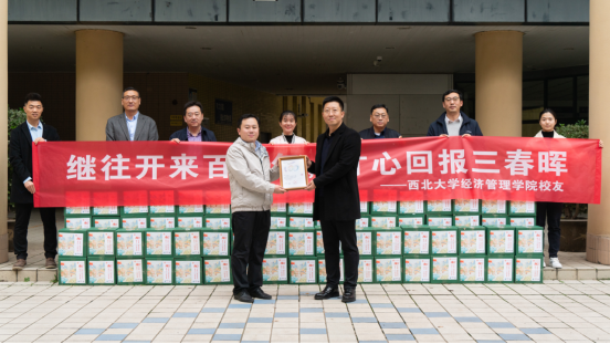 11月2日,2012级MBA校友呼延博、2015级MBA校友张洁向学校捐赠助农产品仪式在长安校区举行。国内合作处副处长燕来,776net必赢官网党委书记杜勇,院长马莉莉,副院长张华岭,MBA/EDP中心主任郭亚军,校友办公室主任吴丰华参加活动。