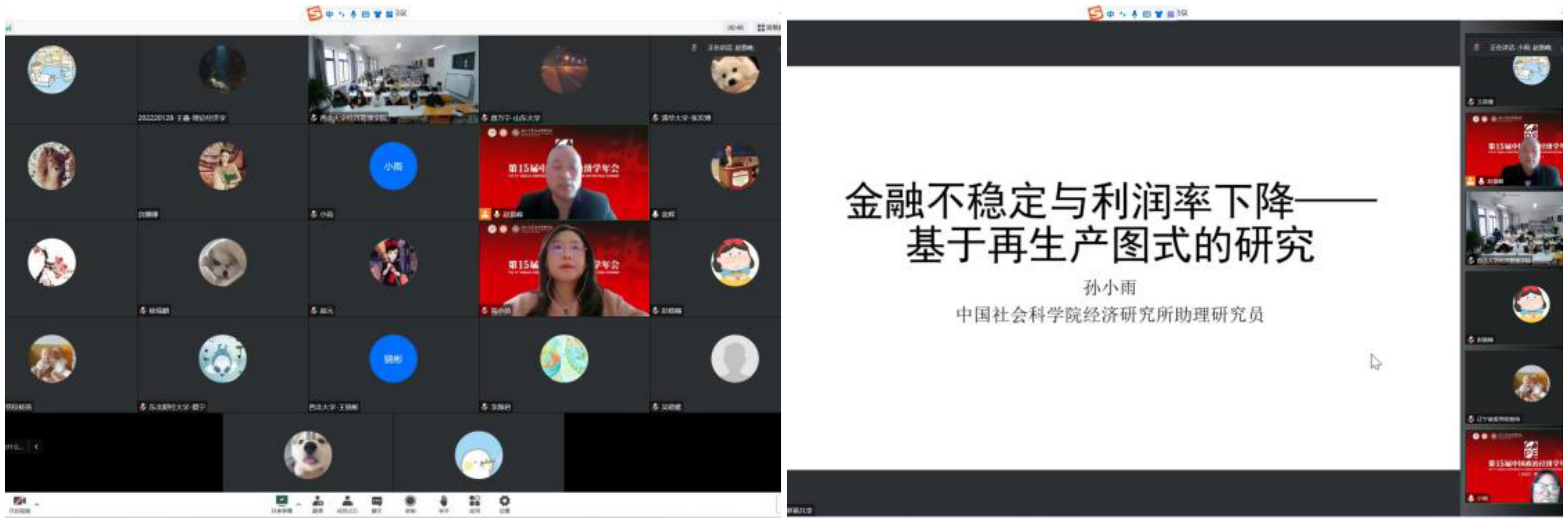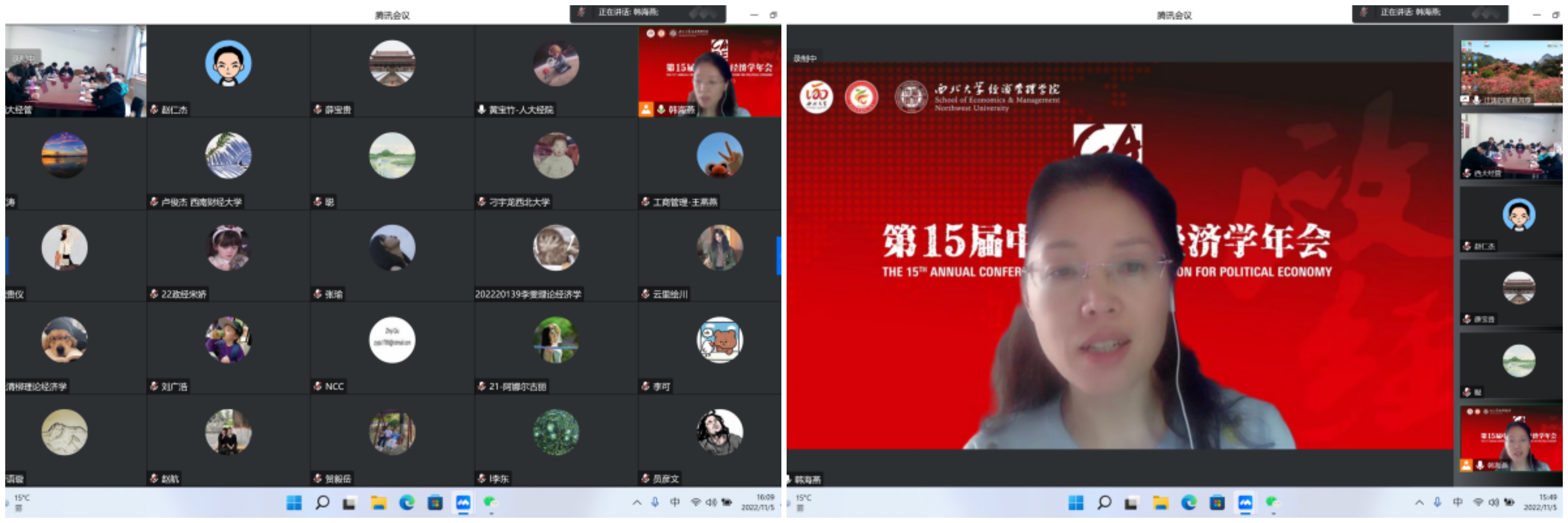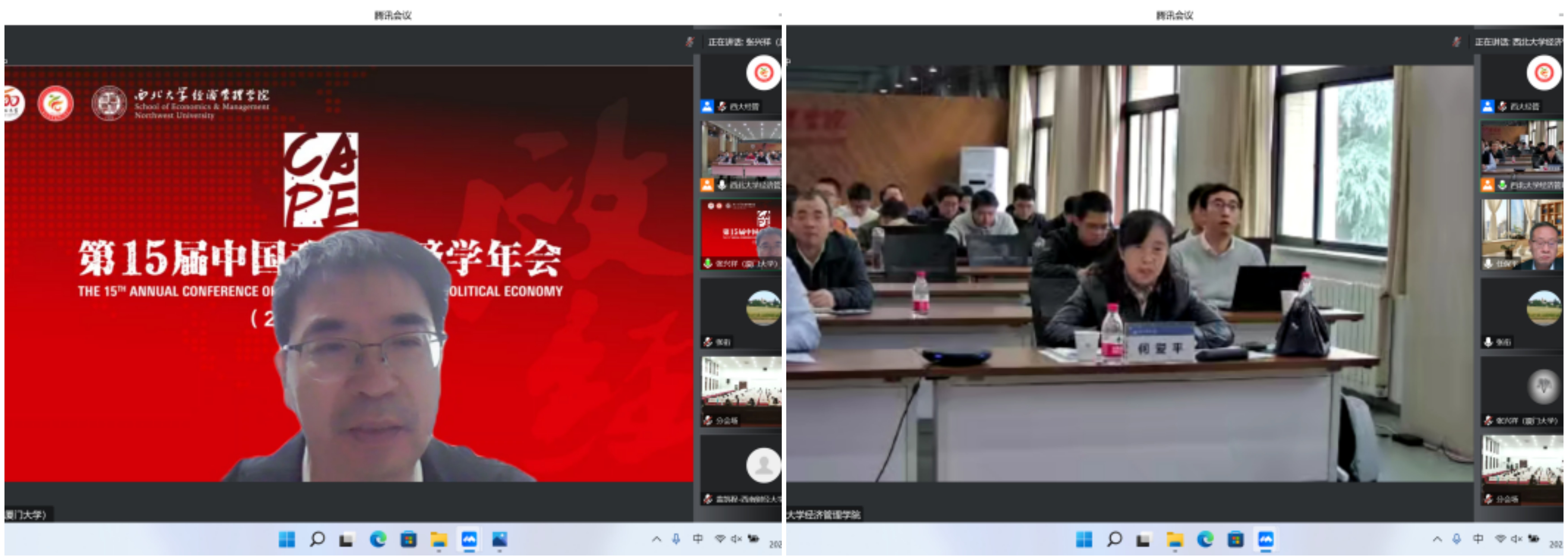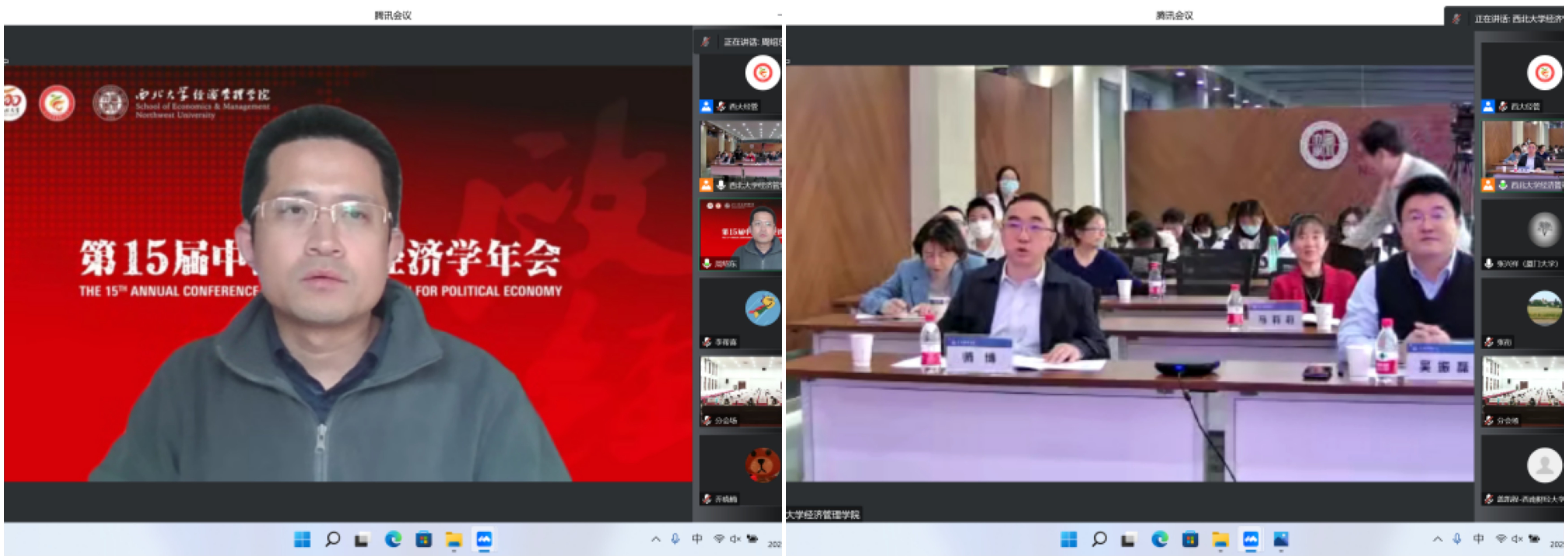 2022年11月5—6日,由中国政治经济学各理事单位共同主办、776net必赢官网承办的第15届中国政治经济学年会以“线上+线下”相结合的方式成功举行。本次会议共进行2场主旨报告、14场主题报告,7个分论坛60余篇论文交流,来自北京大学、清华大学、中国人民大学、中国社会科学院、复旦大学、南开大学、厦门大学、武汉大学、南京大学、四川大学、辽宁大学、西南财经大学、广东外语外贸大学、天津师范大学和西北大学等40余所国内重点高校和科研院所的150余位正式会议嘉宾围绕马克思主义政治经济学、中国特色社会主义政治经济学等重大理论和实践议题,发表观点、开展交流;线下200余名776net必赢官网师生参会,超2000人在线参与论坛,主论坛网络直播超5000人次观看,累计8000余人次参会。