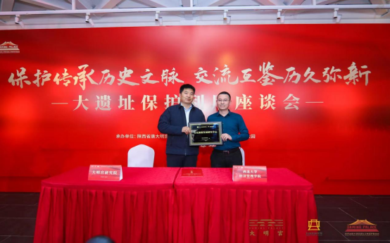 2023年3月3日下午,由大明宫研究院主办,陕西省唐大明宫遗址文化保护基金会、西安曲江大明宫国家遗址公园管理有限公司承办的“保护传承历史文脉·交流互鉴历久弥新”大遗址保护利用座谈会在大明宫圆满召开。我院李辉副院长、旅游管理系主任梁学成教授应邀参会。会上,我院与大明宫研究院就联手打造“产学研”合作新高地举行签约仪式,并成立文化旅游发展研究中心,推动我院与大明宫在教学科研、旅游服务等领域进行全面合作。