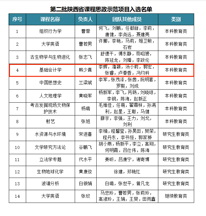 我院《基础会计学》课程入选陕西省课程思政示范项目