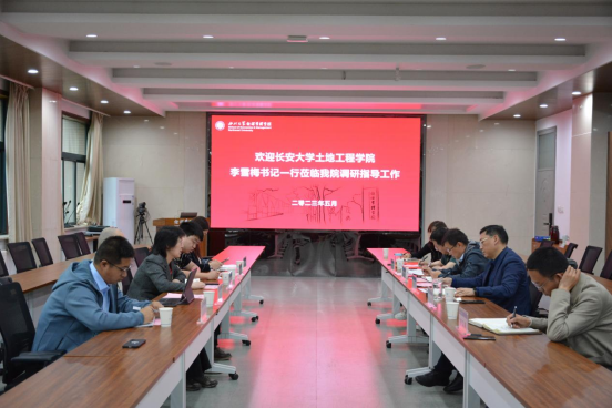 为深入开展学习贯彻习近平新时代中国特色社会主义思想主题教育,推动提升党建工作质量,5月29日上午,长安大学土地工程学院党委书记李雪梅、党委副书记李文等一行来我院进行调研交流。学院党委书记杜勇、党委副书记徐自成以及学院党支部书记代表参会,会议由杜勇主持。