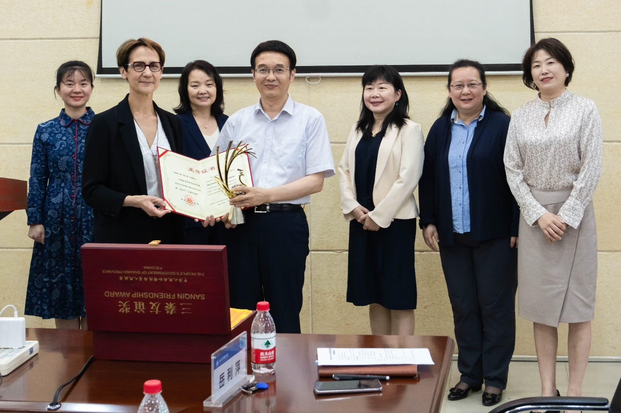 仪式上,国际合作部部长任惠莲对Florence Jany-Catrice教授做了详细介绍,并宣读了获奖文件。校党委常委、副校长张远军为Florence Jany-Catrice教授颁发了三秦友谊奖。