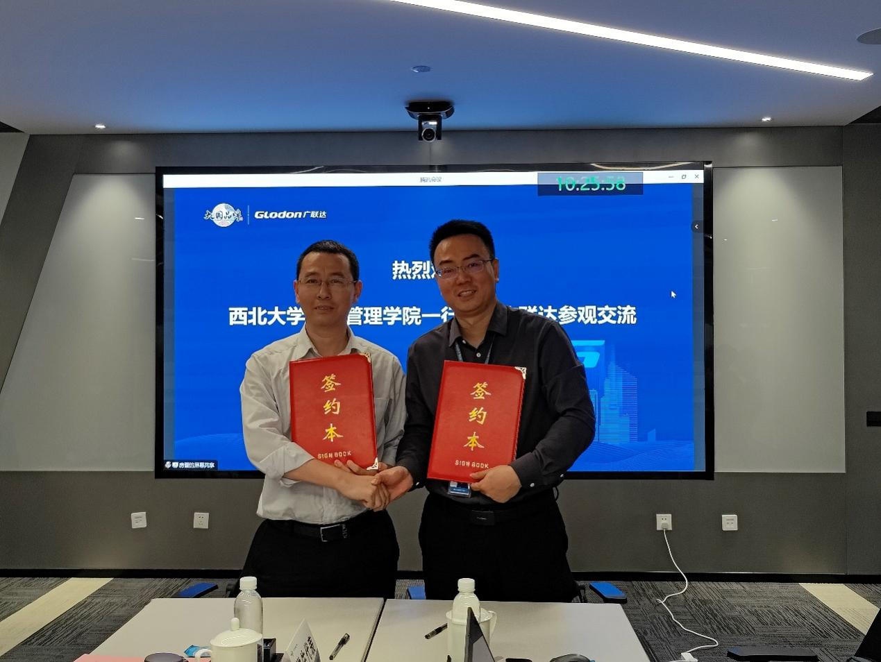 在座谈会上,广联达西安人力资源总监李超锋向信管师生介绍了广联达的企业文化、发展历程、核心价值和社会责任。他表示,广联达始终坚持以客户为中心,以创新为动力,以数据为驱动,以平台为载体,为建筑行业提供全面、高效、智能的数字化解决方案。他同时介绍了广联达在人才培养方面的理念和措施,欢迎信管专业的优秀学生加入广联达,成为数字建筑的推动者和实践者。我院杜勇书记对广联达表示感谢和敬意,认为广联达是建筑行业数字化建设的优秀代表同时是776net必赢官网的优质合作伙伴。李辉副院长介绍信管专业是培养具备经济管理理论、数字科学技术及应用能力、信息系统开发以及大数据管理的交叉学科专业。他表示,信管专业与广联达有着密切的联系和契合度,希望通过此次基地建立,加深双方的了解和合作,为信管专业的教学和人才培养提供更多的支持和帮助。我院杜勇书记和广联达的相关负责人李超锋共同为西北大学经管学院学生实习实践教育基地揭牌,标志着双方的合作迈上了一个新的台阶。
