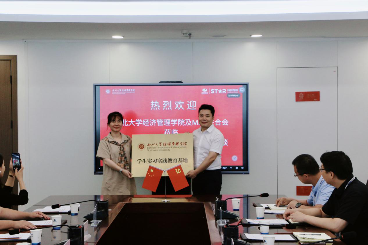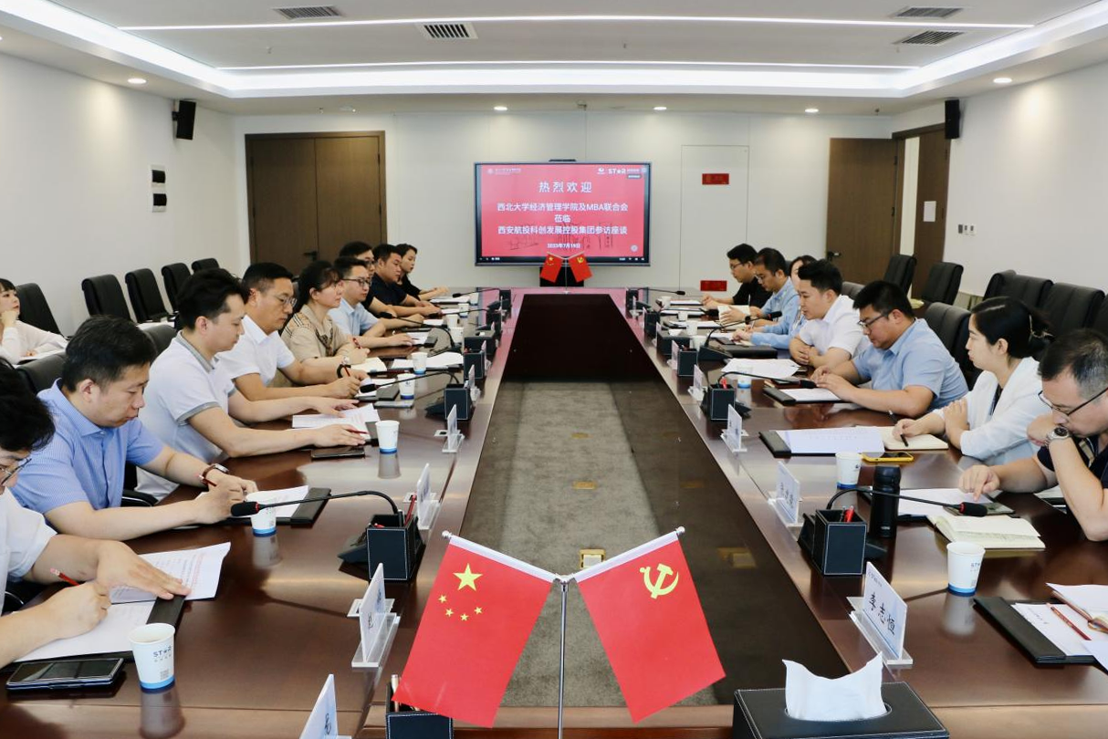 7月19日,776net必赢官网院长马莉莉、MBA/EDP中心主任郭亚军一行前往西安航投科创控股集团举行校企合作座谈暨776net必赢官网学生实习实践教育基地和西北大学MBA/EMBA教学实习基地揭牌仪式。西安航投科创控股集团执行董事辛昱辰、总经理顾元吉、各部门负责人,MBA/EDP中心和联合会师生代表共同参加了此次活动。