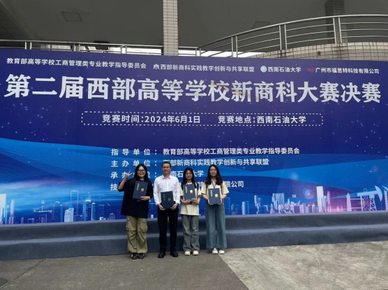 6月1日,第二届西部高校新商科大赛决赛在西南石油大学举行,来自西北大学、西安交通大学、电子科技大学、西北农林科技大学、西南石油大学等55所高校的66支队伍参加。我院李辉副院长带队参赛并获得本科生组特等奖。