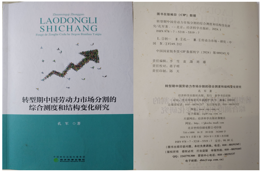 孔军教授的专著《转型期中国劳动力市场分割的综合测度和结构变化研究》在经济科学出版社出版
