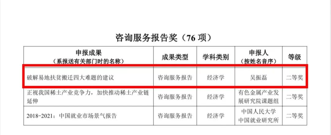 近年来,学院以学科建设为引领,以团队建设为载体,以有组织科研为抓手,在重要科研奖项申报中创新工作服务方式,推动学院科研工作高质量发展。该成果是学院城乡融合与反贫困团队建设的标志性成果,也是学院“十四五”以来重要科研奖项的重大突破,彰显了学院科研服务国家重大战略的能力。在学科发展的关键节点上,学院将继续强化有组织科研服务,助力高水平标志性科研成果产出和学科高质量发展。