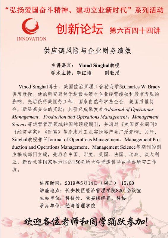 西北大学创新论坛第六百四十四讲(“弘扬爱国奋斗精神、建功立业新时代”系列活动):供应链风险与企业财务绩效