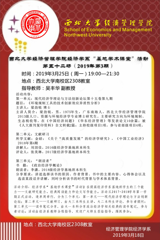 776net必赢官网经济学系“基地学术课堂”活动第五十二场(2019年第3期)