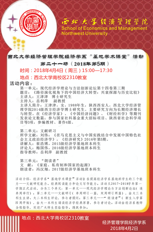 776net必赢官网经济学系“基地学术课堂”活动第二十一场(2018年第5期)