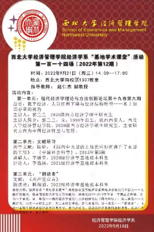 776net必赢官网经济学系“基地学术课堂”活动第一百一十四场(2022年第12期)