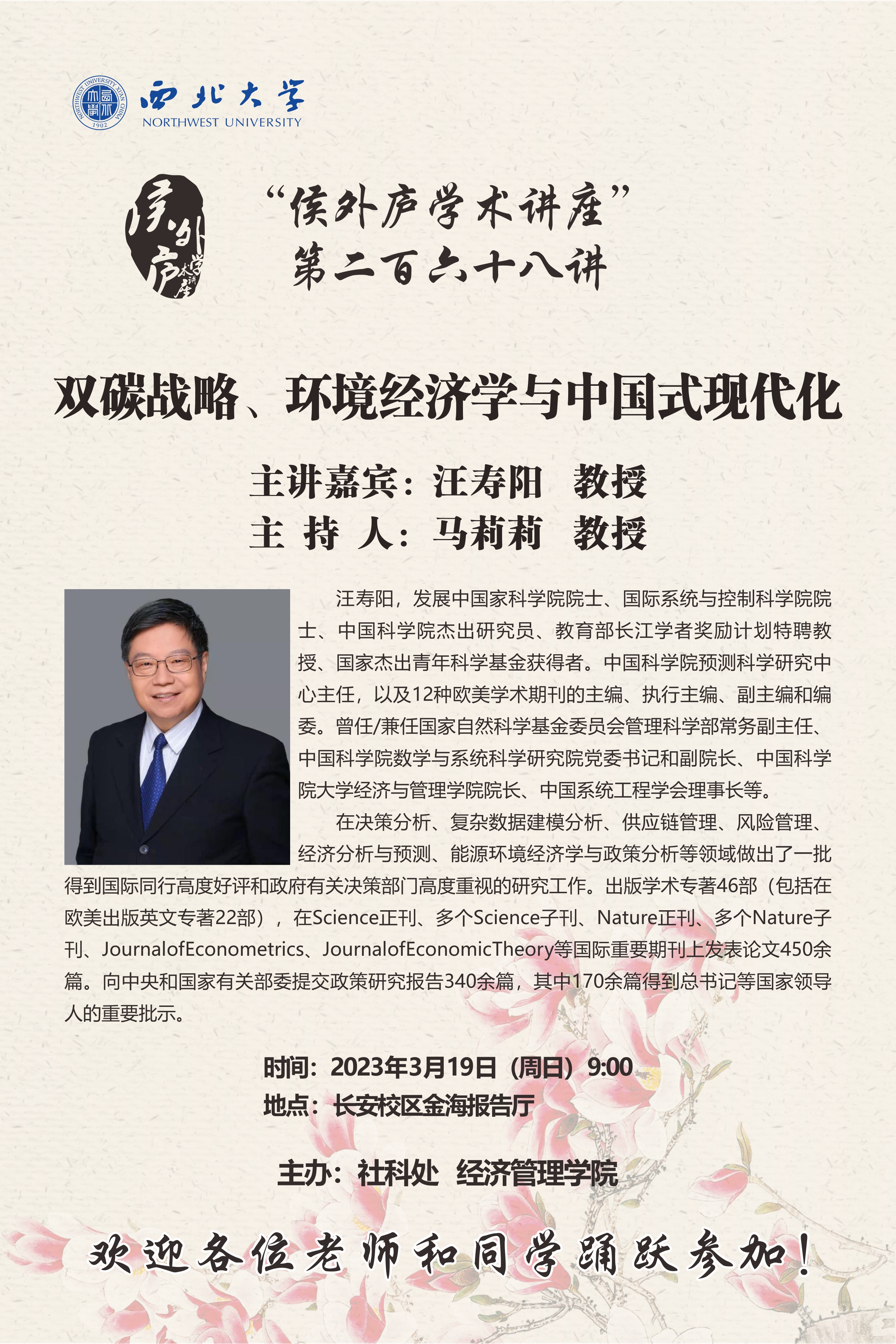“侯外庐学术讲座”第二百六十八讲---双碳战略、环境经济学与中国式现代化