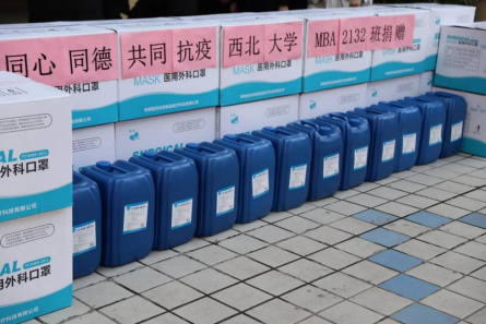 12月31日,在西北大学MBA2132班班委的积极组织下,班级同学向西北大学捐赠一次性医疗口罩50000只、25KG酒精12桶,用拳拳赤子真情表达对学校的牵挂,为学校疫情防控工作贡献力量。西北大学党委常委、副校长、776net必赢官网院长吴振磊,776net必赢官网党委副书记徐自成,学校国内合作处副处长燕来及学院部分学生干部出席了捐赠仪式。