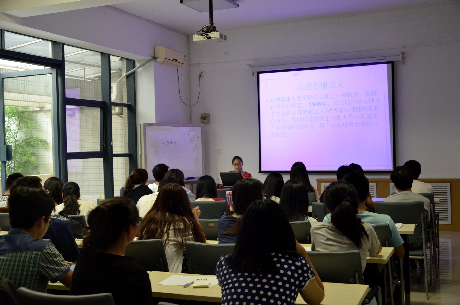 院心理协会为到场的所有班委进行了心理压力测试,使大家真实了解自己的心理状况。随后,简单介绍了心理健康的定义、心理健康的表现以及如何调节心理状态等基础知识。最终,此次团体辅导在一个心理健康教育短片中结束。