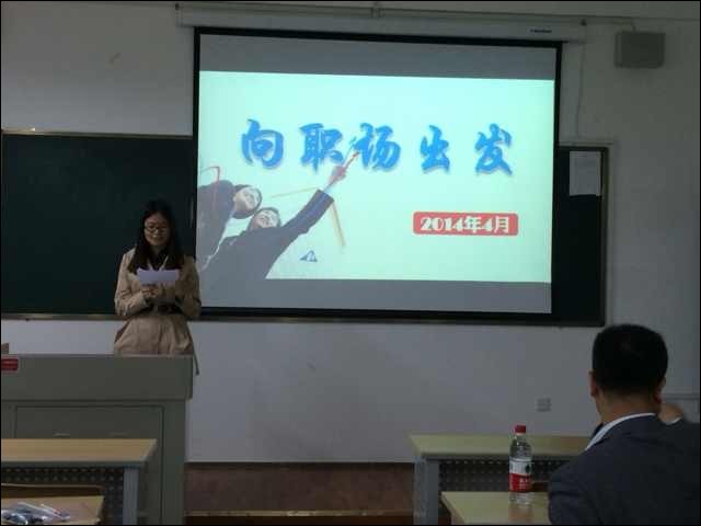 张老师现为西安某地产公司人力资源经理,并在几家企业负责高校毕业生的辅导和培养工作,对初入职场的毕业生的状态和心态有较为深刻的认识和理解。张老师首先向大家阐释了职场是什么,职场拼什么,职场干什么;其次讲述了如何认知职场,如何自我认知,进而如何定位职业;在此基础上,他以向职场出发为切入点,向大家全面的讲解了如何进行职业规划。