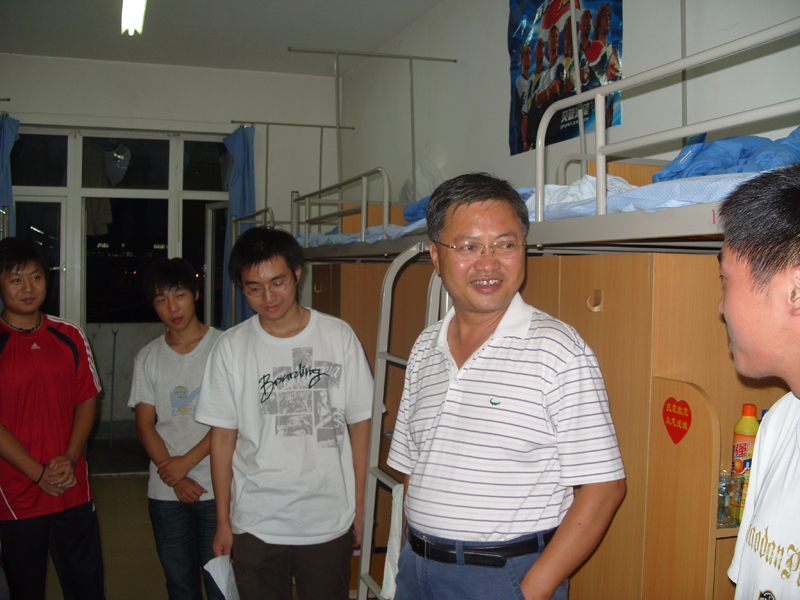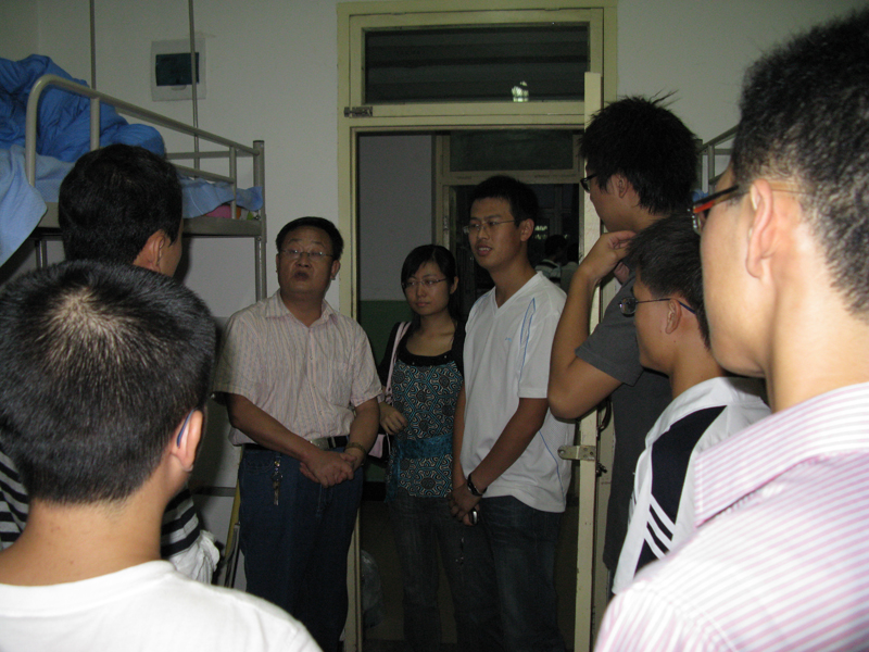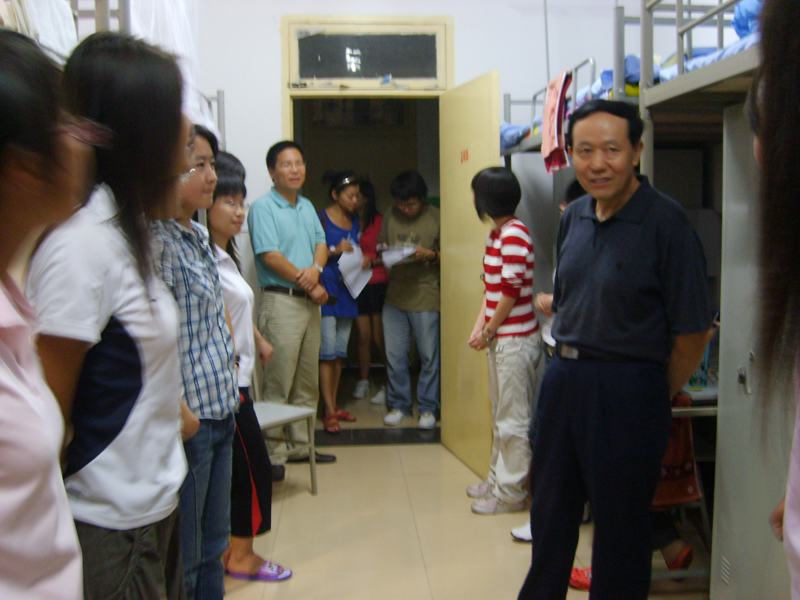几位领导、老师不顾连日来迎新工作的辛苦和疲惫,对08级新生男女生宿舍挨个进行了走访。走访过程中,新生宿舍整洁的内务得到了领导、老师的赞赏,他们强调让同学们将这种好习惯保持下去,使自己的大学生活在有序条理中走向辉煌。另外,薛来前书记还特别强调了宿舍就是一个小的家庭,宿舍成员之间要融洽相处,互帮互助,学会宽容,学会理解,努力营造家的温馨,让每一个成员都能感受到宿舍内家一般的温暖。几位领导老师仔细地询问了同学们生活中各个方面的问题,希望同学们尽快完成从中学生到大学生的转变,尽快地适应学校生活,以积极的心态全身心地投入到全新的大学生活中去。同时领导及老师们询问了学生们对西北大学的印象,以及对他们之后即将开始的军训、学习生活给予了指导,也寄予了很大的希望。